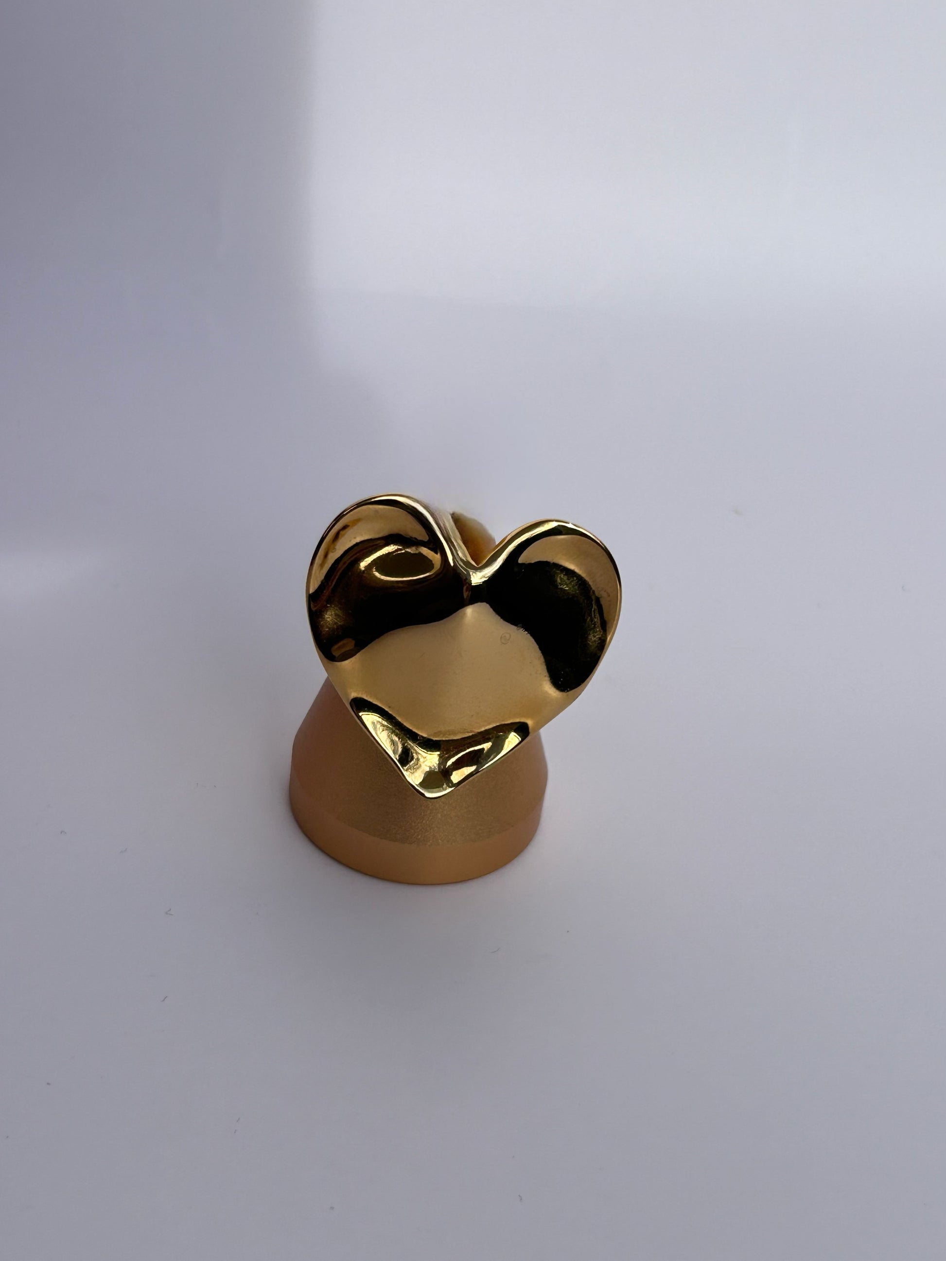 Sculptée comme une œuvre d’art, la bague en cœur doré incarne la force et la douceur féminine. Sa forme fluide et audacieuse évoque la puissance du cœur et la confiance naturelle de la femme moderne.