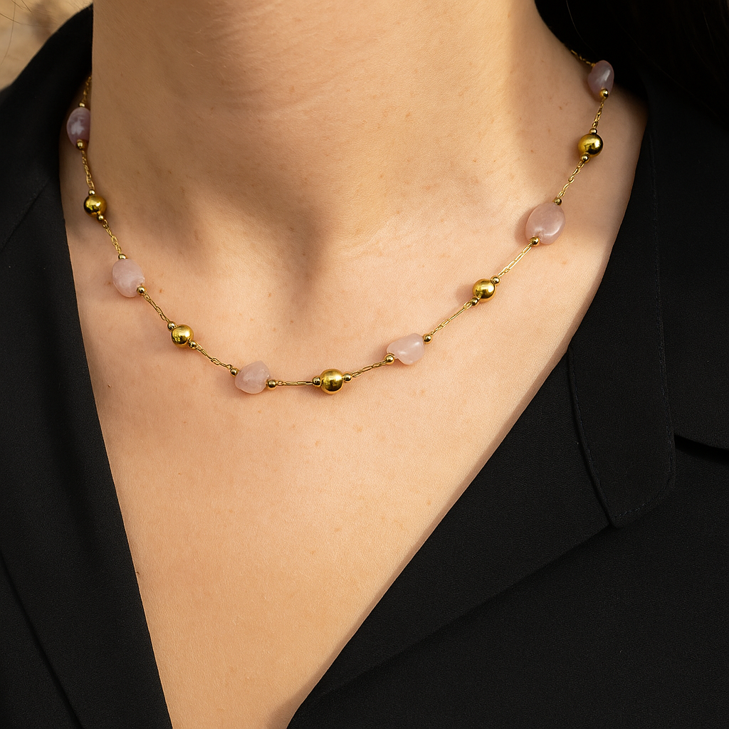 Sublimez vos tenues avec le collier Éclat Azuré, une création raffinée qui allie l’élégance du bleu profond des pierres naturelles à la douceur intemporelle des perles nacrées. Monté sur une fine chaîne dorée, il reflète une harmonie parfaite entre modernité et délicatesse.
